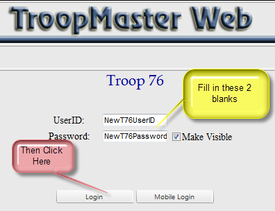 password. When the site is opened, click on the TroopMaster Web link to the left of the