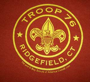 With the BSA Fleur-de-lis logo and identifying text on the front, this is a shirt that proudly displays "Troop 76, Ridgefield CT" and Boy Scouts of America in a way that will make scouts stand out wherever they go.